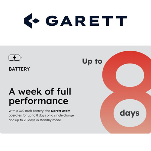 The Garett Atom is fully compatible with iOS and Android, allowing for seamless connection to your smartphone. The dedicated Garett Smart app allows you to synchronize data and personalize settings, allowing you to fully utilize the potential of your device.