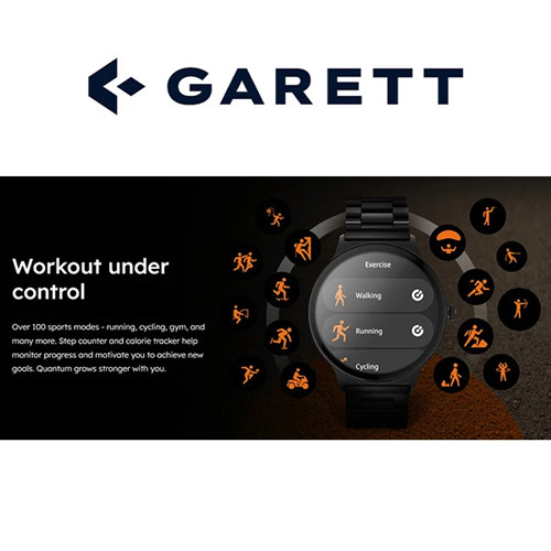 Its durable design with an AMOLED screen and Gorilla Glass ensures it’s ready for action in any conditions. The Garett Quantum tracks health, activity, and notifications to support your daily routine, workouts, and energy-filled moments.