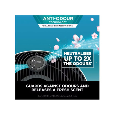 An integrated cartridge neutralises up to 2x the odours†, so you can say goodbye to everyday smells such as those caused by cooking, pets, smoke and more.