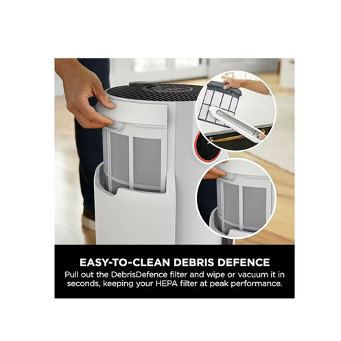 Benefit from 4 layers of powerful filtration: NanoSeal HEPA to capture dust and smoke, Activated Carbon to neutralise odours and gases, a Pet Particle Barrier to guard against dander and allergens, and an easy-to-clean DebrisDefence pre-filter.